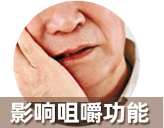 咀嚼能力有限。造成牙龈萎缩,邻牙相缝松动脱落